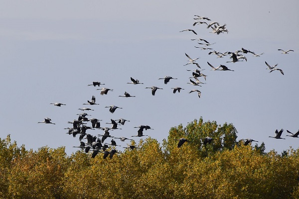 Wenn die Kraniche in Richtung ihrer Winterquartiere nach Südfrankreich, Spanien und ins nördliche Afrika bei uns Rast machen, haben sie bereits mehrere hunderte Kilometer aus ihren Brutgebieten in Skandinavien hinter sich.