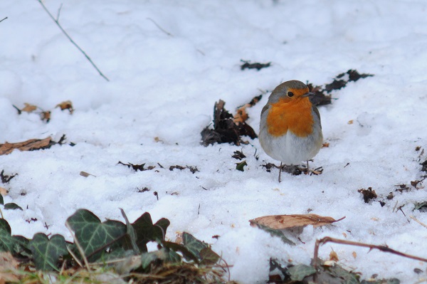 Rotkehlchen Das Rotkehlchen zeigt sich besonders zutraulich gegenüber Menschen und weist nur eine geringe Fluchtdistanz auf.. Dieser kleine Vogel mit geschwollener roter Brust ist eigentlich das ganze Jahr über territorial und duldet keine Nebenbuhler um sich. Dabei muss es sich nicht um das selbe Tier handeln, was hier später auch sein Brutrevier hat. Auch Rotkehlchen, die Kurzstreckenwanderungen im Winter durchführen, singen in der Ferne. Scheinbar stimuliert bei der Art besonders das schwache Licht zur Dämmerungszeit. Es fällt auf, dass Rotkehlchen im Schein einer Laterne unter künstlichen Bedingungen auch jetzt im Winter deutlich länger singen. Anfang Januar hörte ich ein Rotkehlchen auch in den Hallen eines Baumarktes singen.