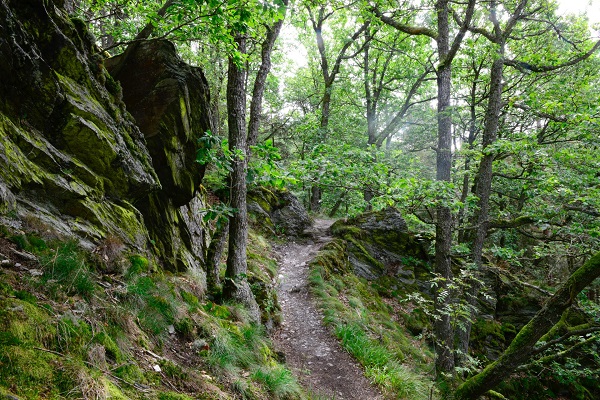 Wildnistrail/Schöpfungspfad mit Schieferhängen und alten Eichen