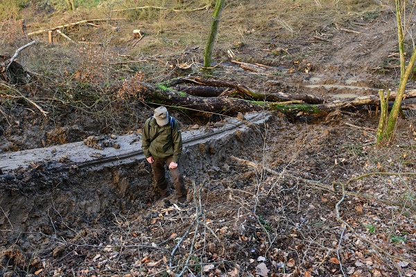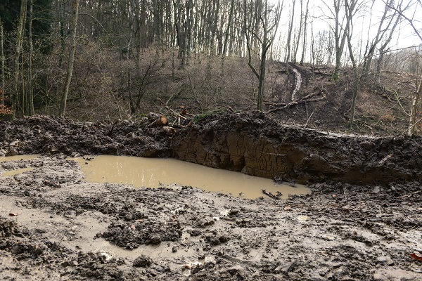 Der Harvester hat damit den wertvollen, natürlichen Waldboden stark verdichtet und irreversibel geschädigt. Neumann und Hahn gehen davon aus, dass z.B. die dort im Boden überwinternden Feuersalamander und andere Kleintiere zerquetscht und damit getötet wurden. Die Harvesterspuren verlaufen sogar senkrecht zum Waldhang, so dass der Boden bei Regen erodiert und in den Kaltenbach eingeschwemmt wird. Dort lebt der Steinkrebs, dessen Höhlen dann zugeschwemmt werden.