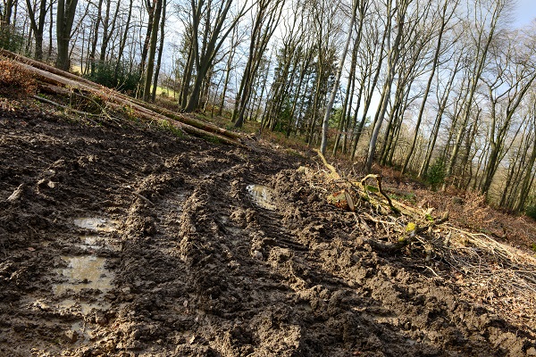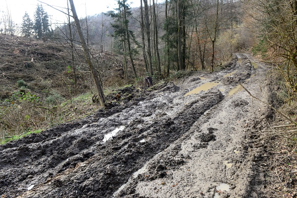 Harry Neumann und Günter Hahn betonen, dass es zu den Rodungsflächen im Kaltenbachtal keine direkte Wegeanbindung und auch keine Rückegassen für die hier eingesetzten Großgeräte gibt. Umso unverständlicher ist es, dass der Harvester mit offensichtlicher Unterstützung des zuständigen Försters mitten durch den Bestand des schützenswerten und naturschutzfachlich wertvollen Hainsimsen-Buchenwaldes auf mehreren hundert Metern gefahren ist.