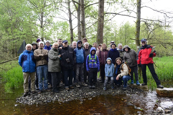 Die zweite Hälfte der Gruppe steht auf der anderen Seite der Furt.