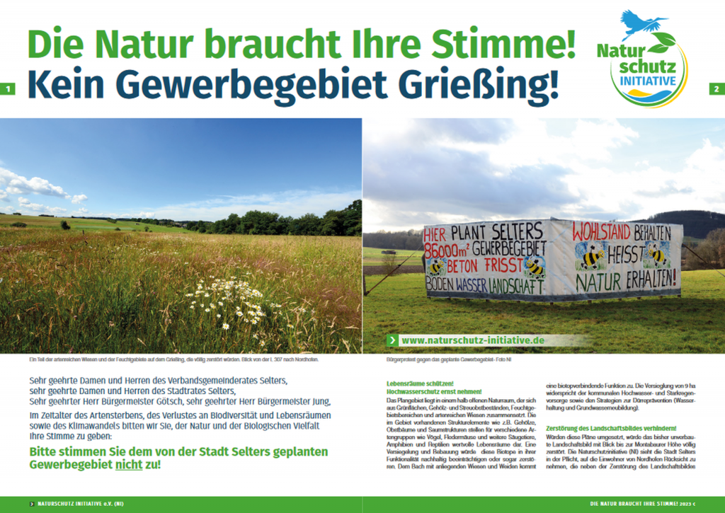 NI-Aufruf an VG und Stadt Selters: Die Natur braucht Ihre Stimme! Kein Gewerbegebiet Grießing!