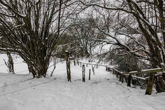 Der kleine Wanderweg quert den Brückenbach bei Kurtscheid auf einem hölzernen Steg. Der Bachlauf führt durch eine quellige Mulde mit vielen seltenen