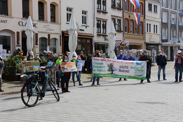 Die protestbereiten Bürger und Bürgerinnen, welche aus verschiedenen Teilen des Westerwaldes angereist waren, demonstrierten friedlich und bunt, mit vielen selbstgestalteten Bannern und Plakaten auf denen sie ihr Anliegen deutlich machten: Die Natur muss vor dem zunehmenden Flächenfraß durch überdimensionierte und fehlplatzierte Bau- und Gewerbegebiete geschützt werden, um ihrer selbst Willen und auch im Hinblick auf die Lebensqualität der zukünftigen Generationen.