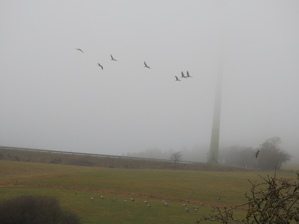 Bereits im Oktober 2018 hatten die Naturschutzverbände das LANUV und die UNB Euskirchen angeschrieben, auf das signifikant erhöhte Tötungsrisiko beim Fluggeschehen der Kraniche zu Schlechtwetterlagen hingewiesen und um Abschaltung der Windanlagen in Zugbereich der Kraniche gebeten.