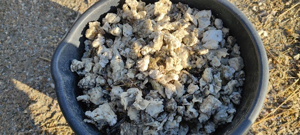 Eimer mit Paraffin, welches Mitglieder des Seeadlerschutz Schlei e.V. im Oktober 2022 am Strand auf Fanø einsammelten – Foto: Frank Dreves / Seeadlerschutz Schlei e.V.