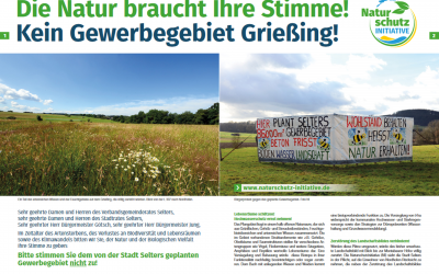 Dringende Bitte der Naturschutzinitiative (NI): Bitte stimmen Sie dem von der Stadt Selters geplanten Gewerbegebiet nicht zu!