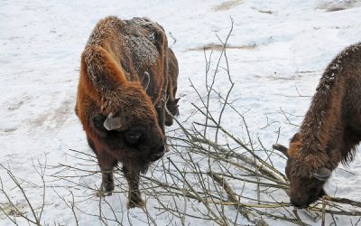 Die imposanten Wisente knabbern gerne schon mal an Gehölzen - Foto: Immo Vollmer/NIDie Wisente auch Europäische Bisons (Bos bonasus) genannt, sind zurück in Deutschland. Der Wisent ist eine imposante Erscheinung, die uns an prähistorische Ze[...]