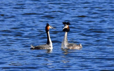 Haubentaucher bei der Balz Der Frühling ist angekommen, die Vögel sind teils am Balzen, teils aber auch schon am Nestbau oder bei frühen Arten, wie z.B. den Eulen, auch schon am Brüten oder füttern. Es ist eine ereignisreiche Zeit, wo es gil[...]