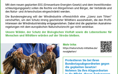 Die Naturschutzinitiative e.V. (NI) hat die Anzeigenkampagne „Stoppt das EEG – „Keine Sondergesetze für die Windindustrie“ gestartet. Die Anzeige erscheint am 07.11.2020 in drei Ausgaben der Rhein-Zeitung im nördlichen Rheinland-Pfalz[...]