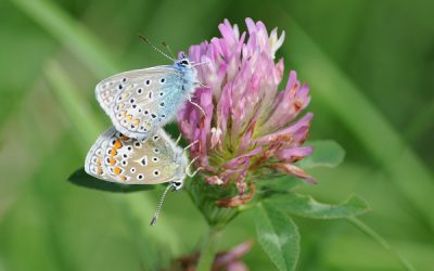 Hauhechelbläuling (Polyommatus icarus) Paar auf Rotklee in der Wahner Heide - Foto: Immo Vollmer/NIDerHauhechel-Bläuling(Polyommatus icarus) ist einschöner Tagfalter aus derFamiliederBläulinge(Lycaenidae). Er ist die häufigste[...]