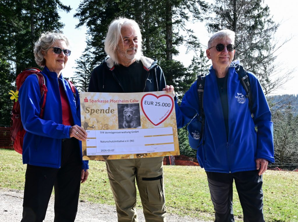 Besonders groß war die Freude bei der NI und den Teilnehmern, als Sportmanager Thomas Reister eine Spende in Höhe von 25.000,00 € an die Naturschutzinitiative e.V. (NI) überreichte. Hiermit unterstützt er die Kosten für das Rechtsverfahren gegen den Abschuss des Hornisgrinde-Wolfes. Darüber hinaus sollen auch die Kosten für Umwelt-, Bildungs-, Informations- und Öffentlichkeitsarbeit unterstützt werden.