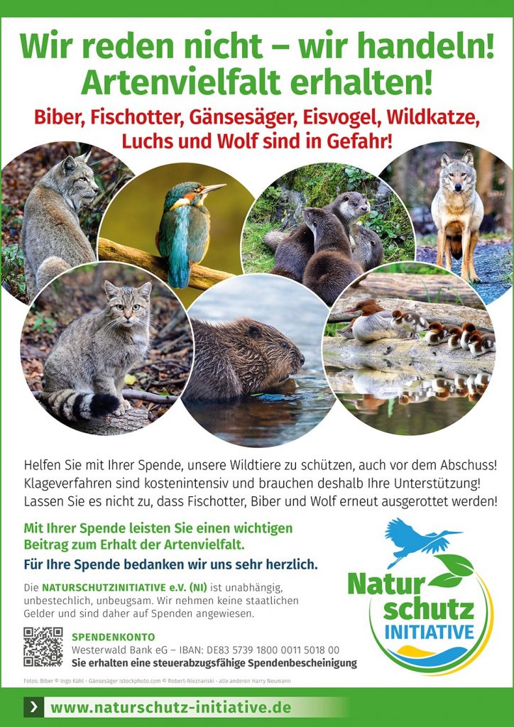 Die Naturschutzinitiative e.V. (NI) ist unabhängig, unbestechlich, unbeugsam. Wir nehmen keine staatlichen Gelder und sind daher auf Spenden angewiesen.
