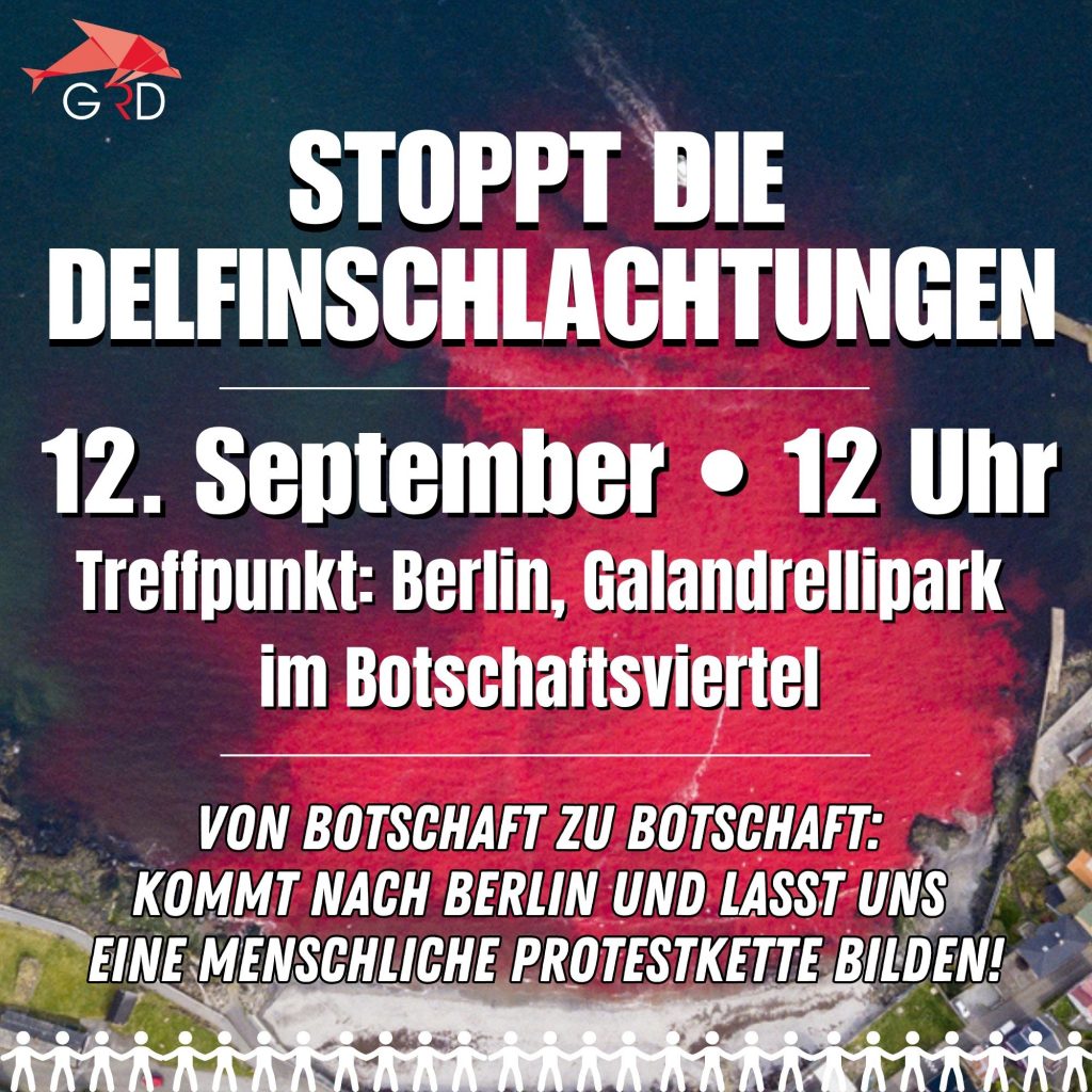 Um den Delfinen eine Stimme zu geben, plant die GRD eine Aktion am 12. September 2025 von 12 bis 16 Uhr vor der japanischen und der dänischen Botschaft in Berlin. Die GRD ruft auf: „Gemeinsam mit euch möchten wir durch eine menschliche Protestkette ein Zeichen setzen.“ Die Protestkette wird die Botschaften der beiden Länder, in denen diese grausame Tradition aufrechterhalten wird, miteinander verbinden. Zusätzlich werden am Ende der Aktion Unterschriftenlisten an die Botschafterinnen und Botschafter überreicht.